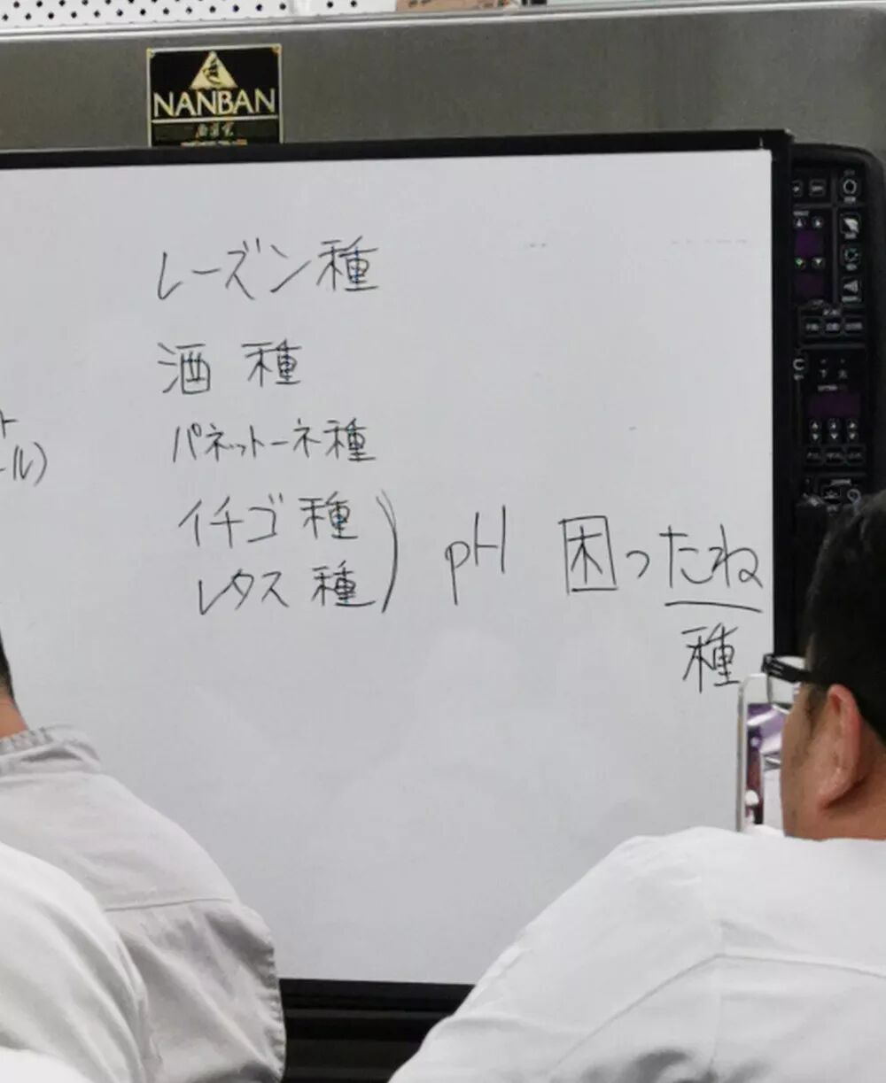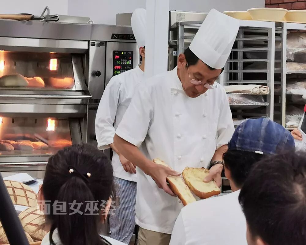 还有一个挺有意思的事情,仁瓶老师与明石克彦老师,金林达郎老师,还有写《面包科学》的竹谷光司老师,都是很好的朋友,有时候跟老师们聊天,可能会听到他们之间交叉吐槽。比如金林老师就说明石老师有时候做一些看起来对面团非常温柔,但是实际意义不大的事,比如温柔地把滚圆松驰好的果子面团从转运箱里一个个拿出来就没必要,多撒粉全部倒出来比较节省时间。又比如仁瓶老师会公开评论说金林老师的洛代夫不够好吃,因为他不雇员工,开个面包店,所有事情都独自完成,所以时间少,一般来说酵母用量都稍微大了些,所以有过度熟成的倾向。仁瓶老师还提到也不要迷信书籍上写的东西哪怕是竹谷老师的《面包科学》里面,也还是可以找出好几处小错的……这让我想起以前日法商事的西田纯司老师说过的一句话,进入面包的世界你会遇到各种各样的老师,老师们会跟你说:要这样做,绝对不要那样做之类的话,但针对同一个问题时常会遇到A老师和B位老师说的理论是完全相反的。这个时候建议大家要做的不是去再多问一位老师到底哪个是对的,最好的办法是,在确保安全操作的情况下,把老师说绝对不可以做的事全部都做一遍,这时候或许你能有更多的收获。