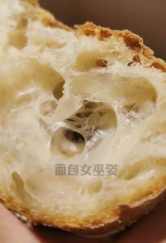 决定法国面包内部组织状态的因素非常的综合,搅拌的状态、面团温度、环境温度等都会影响面团的气孔组织,而面团氧化的程度也会决定面包的组织状态。