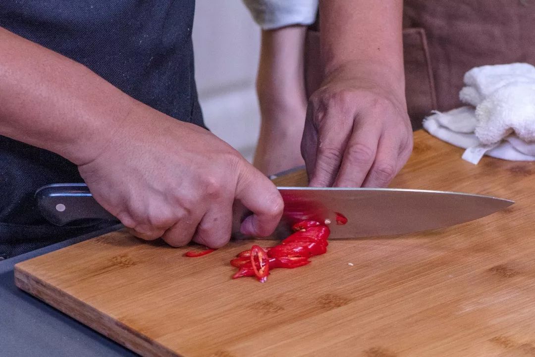 将调好的辣椒酱放入猪耳朵中搅拌均匀,然后用保鲜膜将碗口封住包好,即可食用。建议冷藏一到两个小时后拌匀再享用,风味更佳。