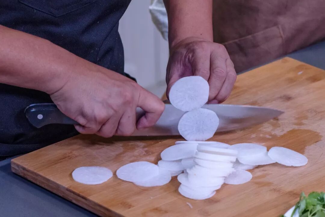 用保鲜膜封住萝卜碗口,即可食用。建议冷藏一到两个小时后拌匀再享用,风味更佳。