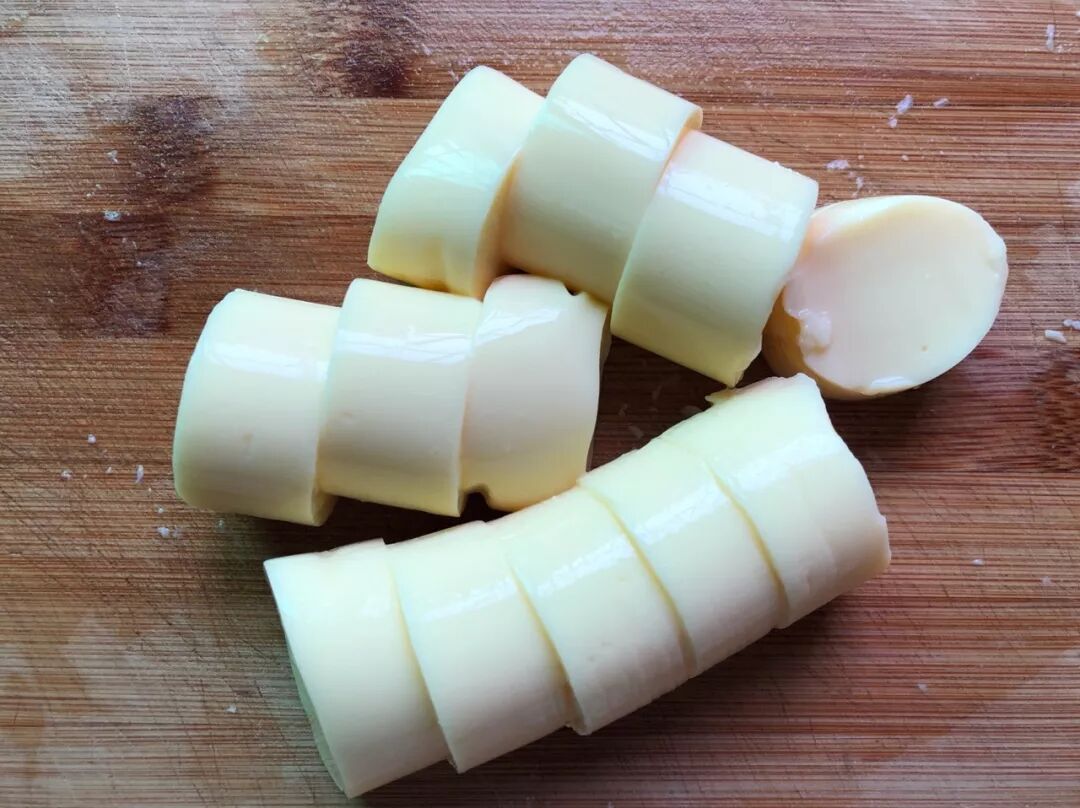 1. 豆腐切成厚片。在切好的豆腐片上再划两道(方便入味),不要划断。