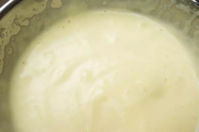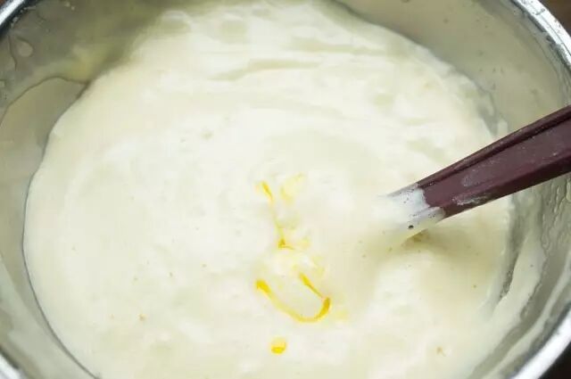 ⑤加入融化的黄油和牛奶,翻拌均匀。