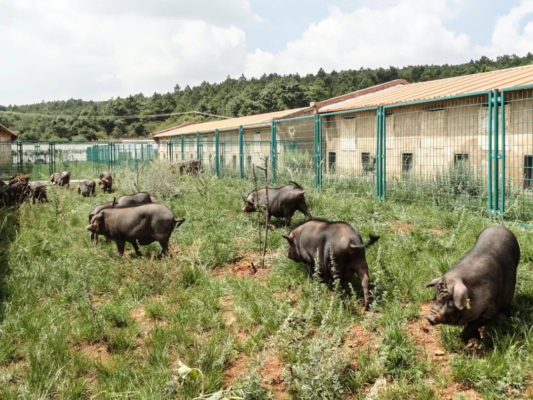 和吃着饲料圈养催熟的普通猪不同,乌金猪是吃着沙拉长大的“中产猪”,玉米、萝卜、土豆和蛋白草是每日必备,吃完还要在高原上散步晒太阳。