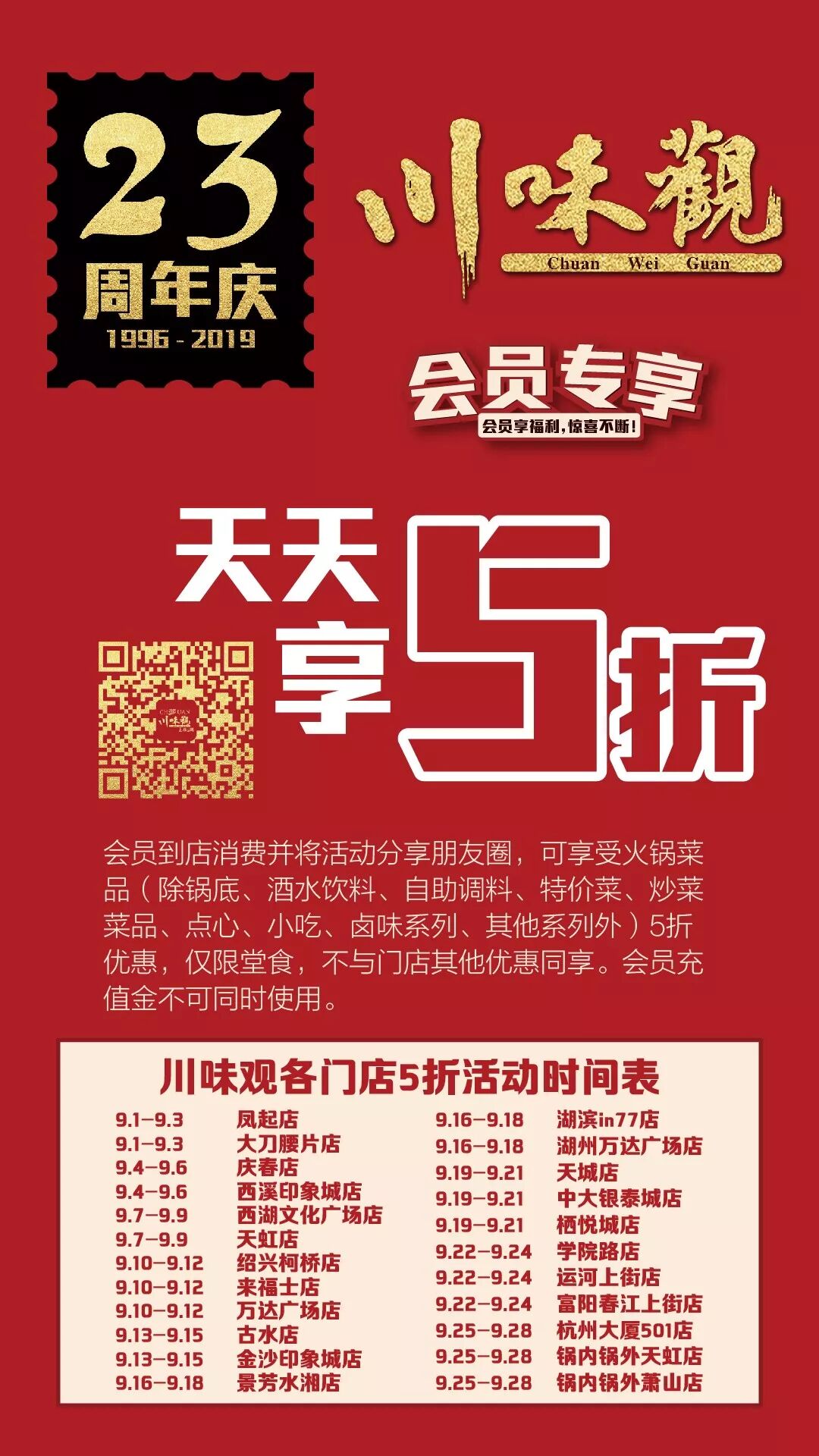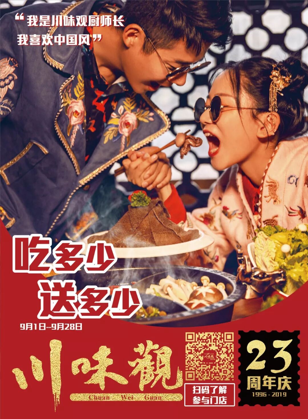 23周年之际,川味观推出多款好礼,老沈掰着手指都要数不过来了。整个九月,你将被川味观“包养”!