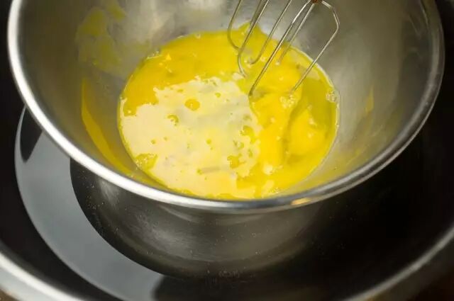 ①用电动打蛋器低速打发鸡蛋,然后加入细砂糖搅拌均匀。