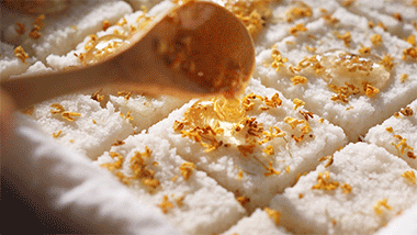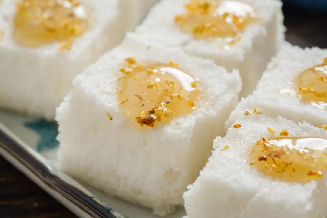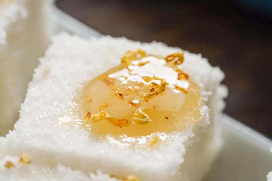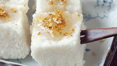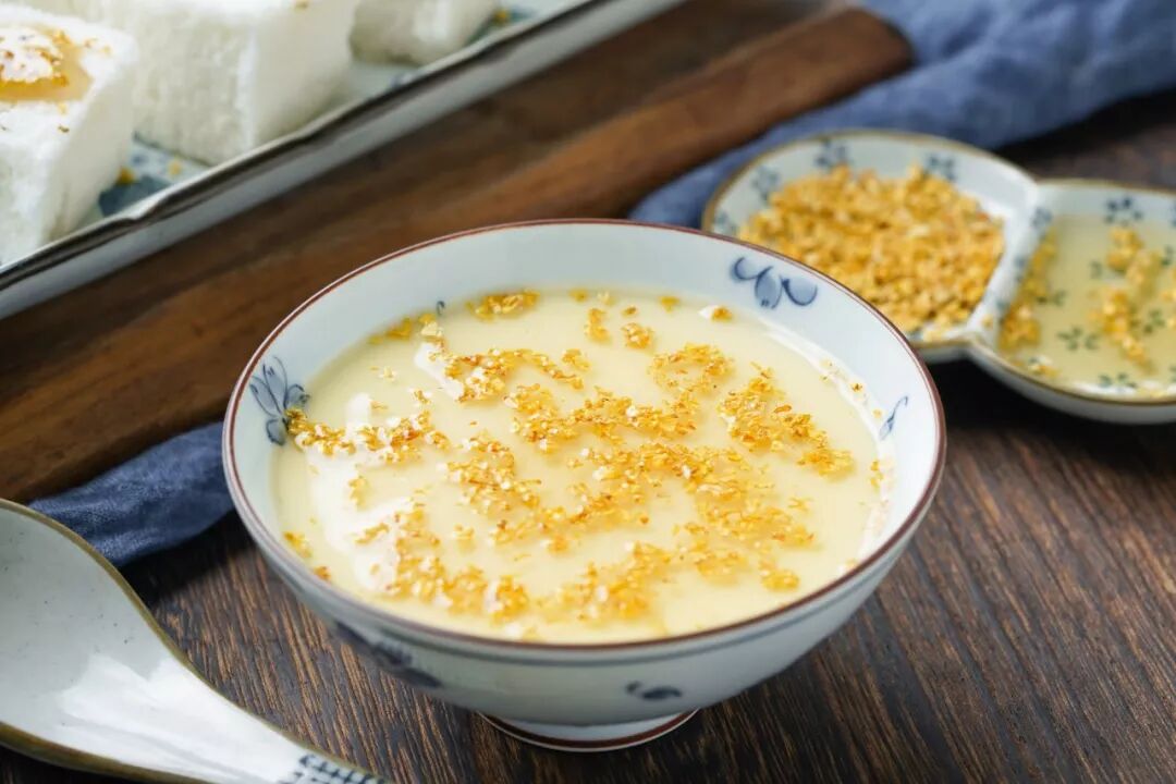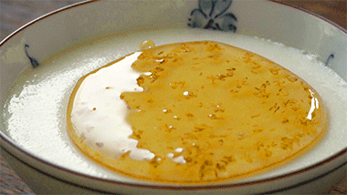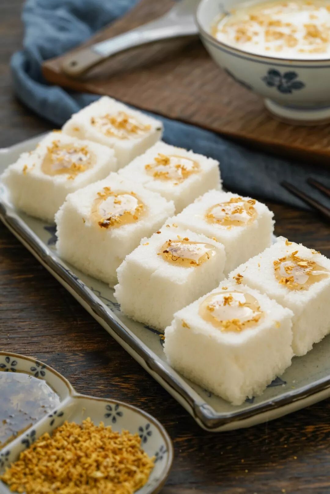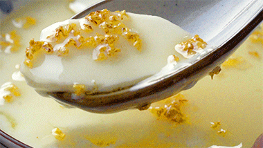 这时候如果再配一碗滑嫩的桂花炖奶刚刚好,中和了米糕的口感,让桂花的甜蜜在嘴里变得愈加香浓。