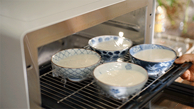 *盖上保鲜膜可以让炖奶表面更加嫩滑。