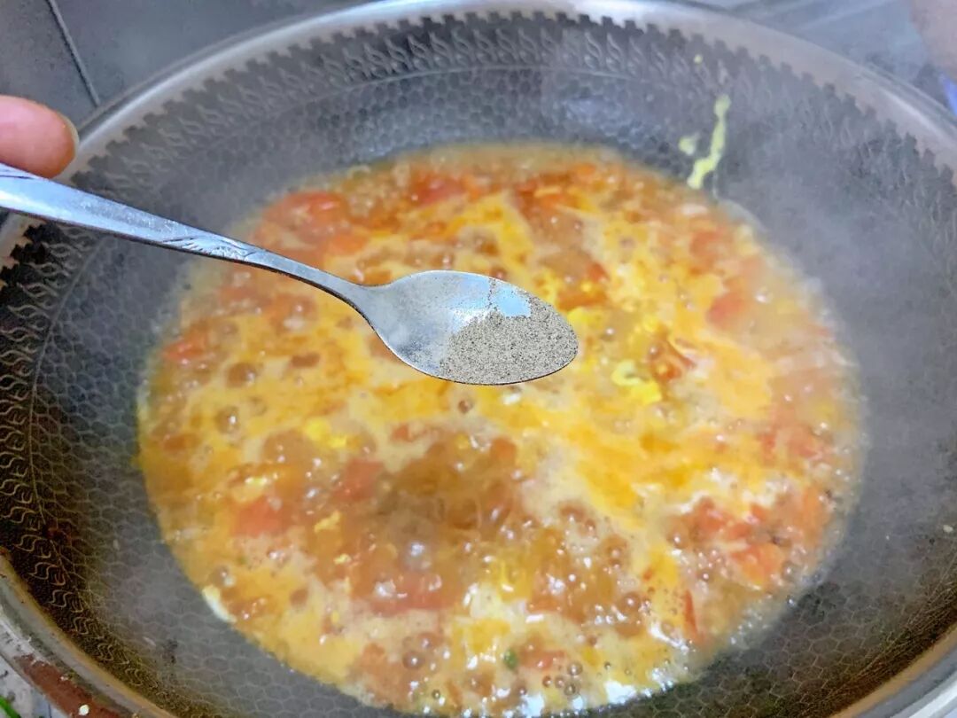 6. 加入两碗水烧开,打入一个鸡蛋,加一勺盐和黑胡椒,煮开即可。