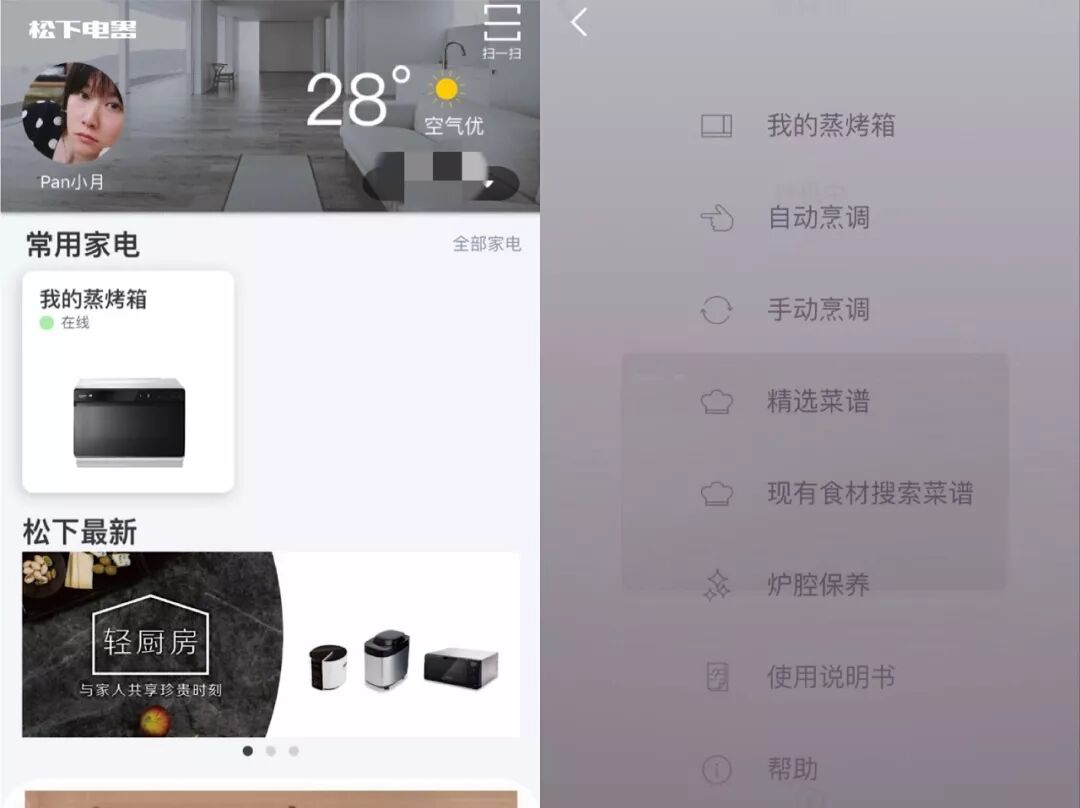 这台全新型号的松下蒸烤箱,使用「松下智能家居」APP来操作非常方便!平时最常用到的核心功能,都能在手机上进行远程控制,并实时查看蒸烤箱的运行状态。