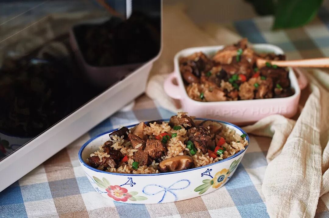 它还具备三种「蒸」的模式,精准的电脑控温可以用较低的温度蒸出格外滑嫩的蛋羹、鸡肉。我用其中的「慢蒸」功能做了排骨焖饭,比电饭煲更快更好。米粒软硬适中,喷香扑鼻。