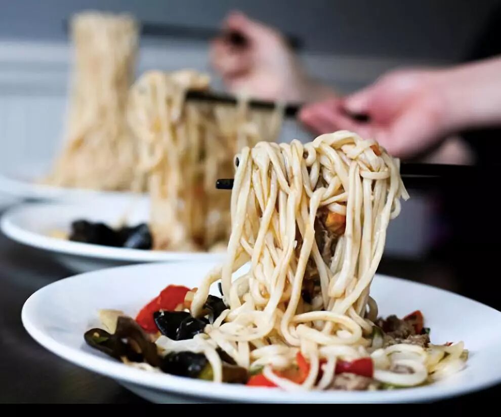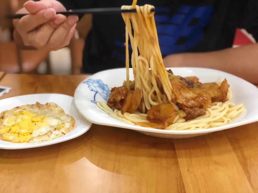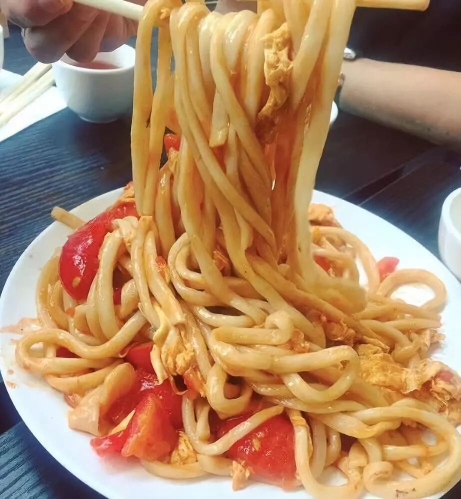 但受不住朋友的劝说,尝试性拿筷子挑了一根,吸溜入口,浓郁的番茄香气便充斥了整个口腔,触及舌尖的是微微的辣,牙齿咬合间面条不屈不挠,反复咀嚼竟与味道十分契合,刚送之入喉我便迫不及待夹起两根、三根...