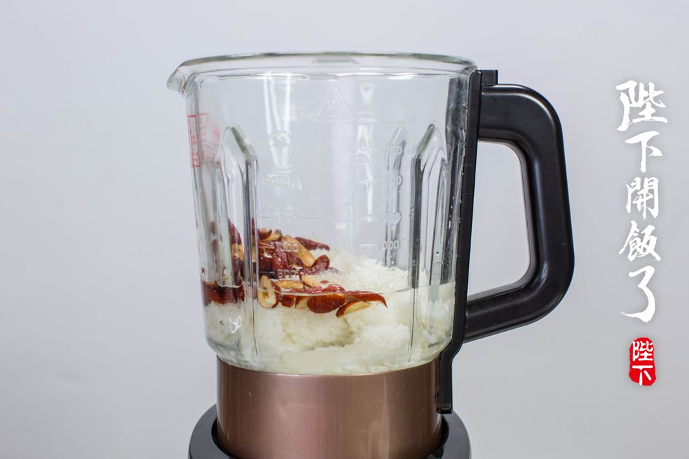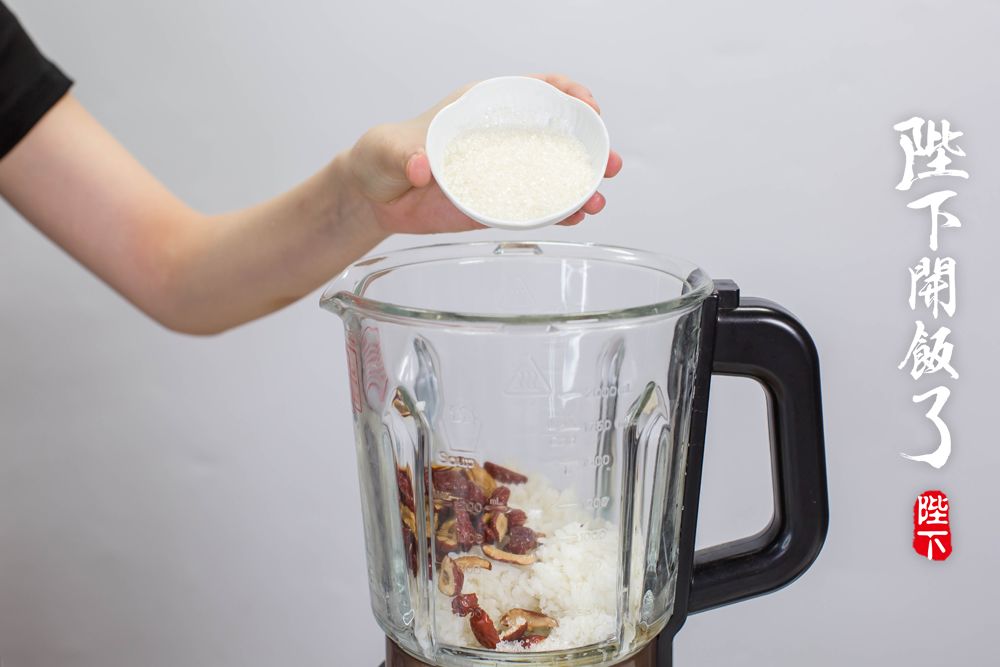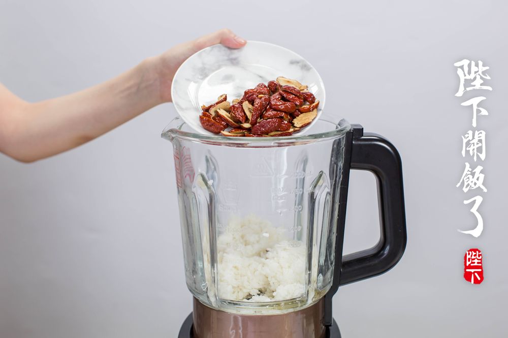 把米饭丢进破壁机,像包子满满这么一大碗,大约能榨 2 碗半多左右。