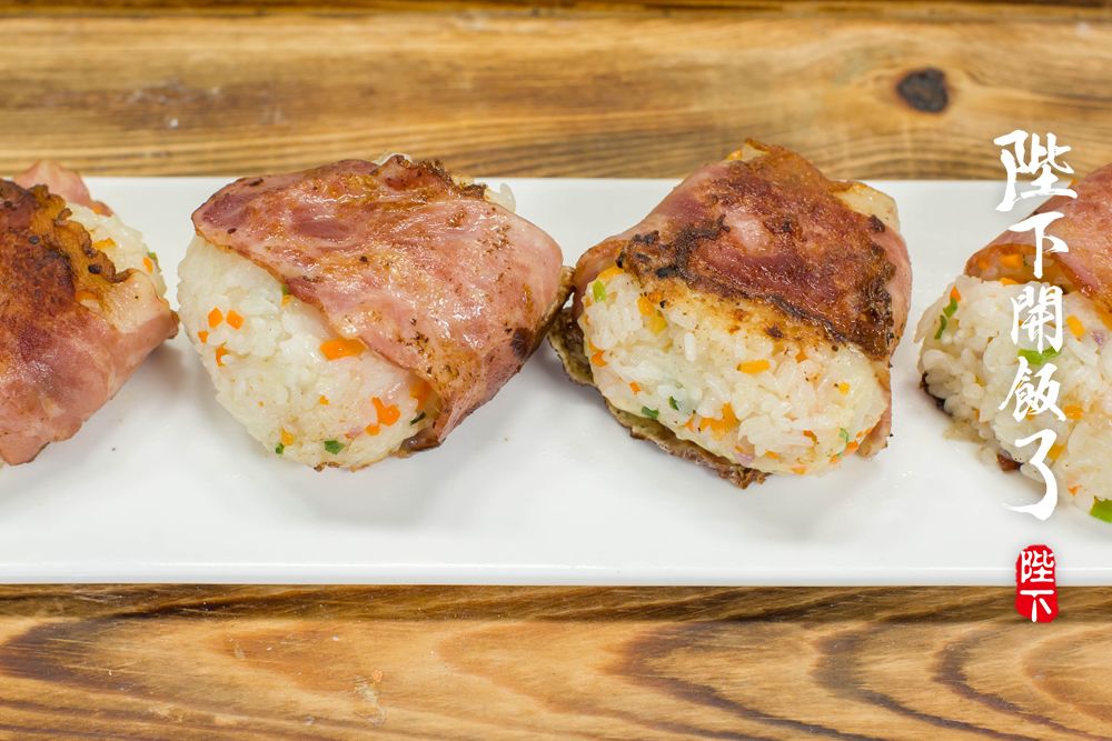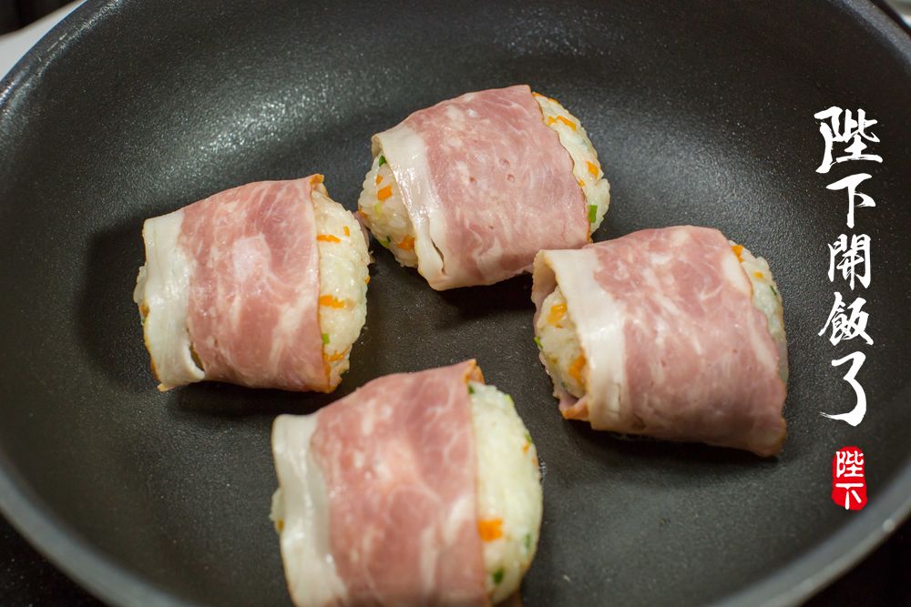 剩米饭也要分时候的么? 当然啦!中午的剩米饭,可以留着晚上吃,所以机智的小包子用它做了 2 道相当香喷喷的丸子和培根卷,也算半个「硬菜」吧!