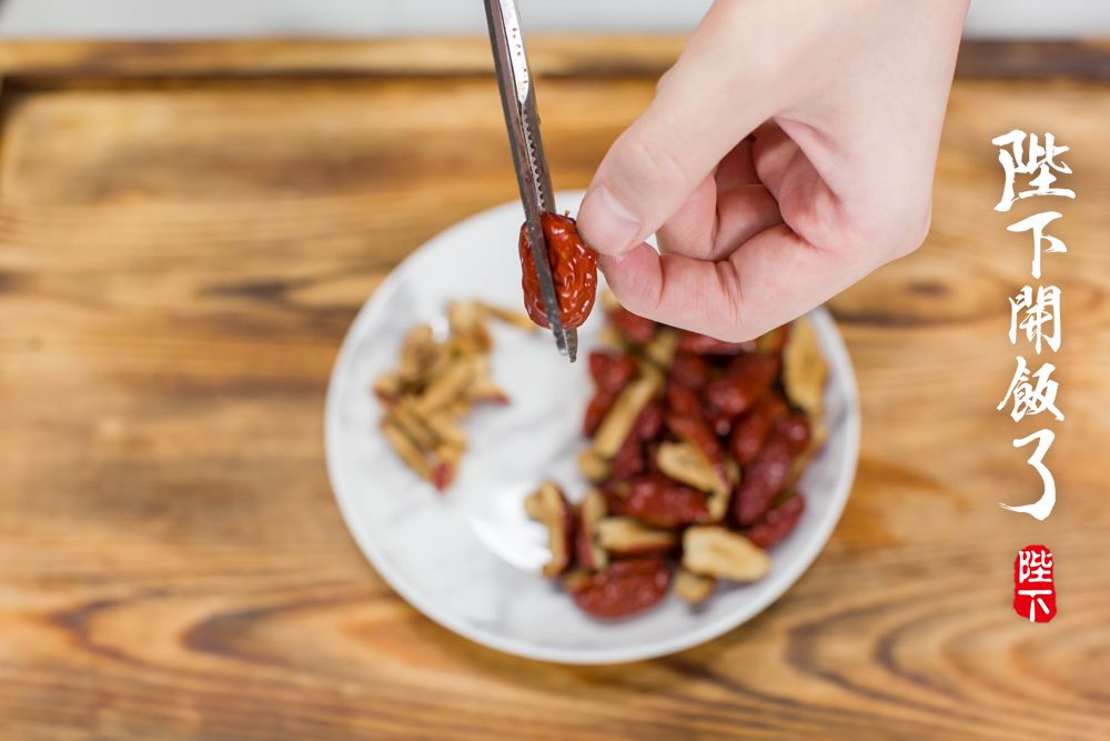 准备一把洗净的剪刀,沿着枣核把枣肉剪下来。