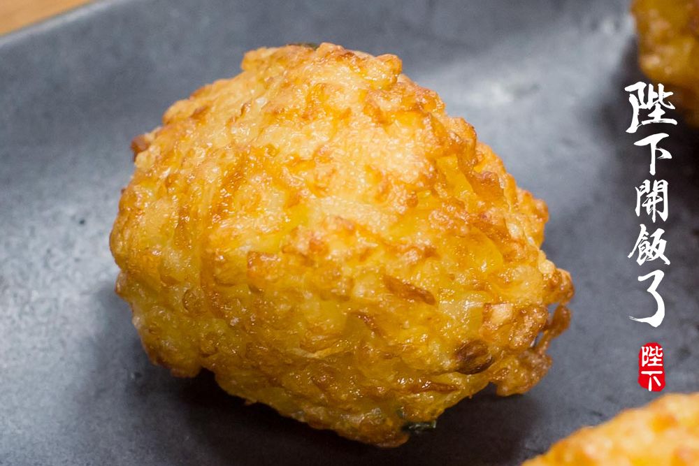 刚咬的时候,是油和米饭在高温接触后产生的焦香和油香。牙齿再深些,糯糯的米饭散发出来的米香和土豆胡萝卜交杂出来的蔬菜清香,让你忍不住整个塞进嘴里,闭紧嘴巴咀嚼,不让香味溜出去~