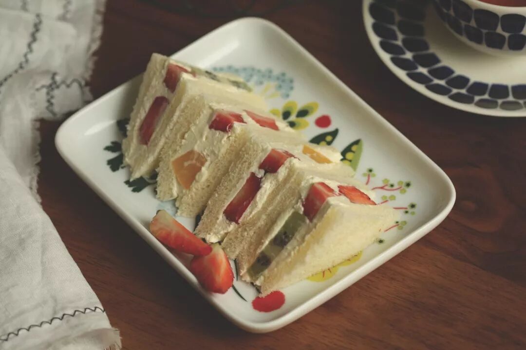 除了咸三明治以外,有时也会用奶油和水果搭配制成甜三明治,口感同样以轻盈为主。