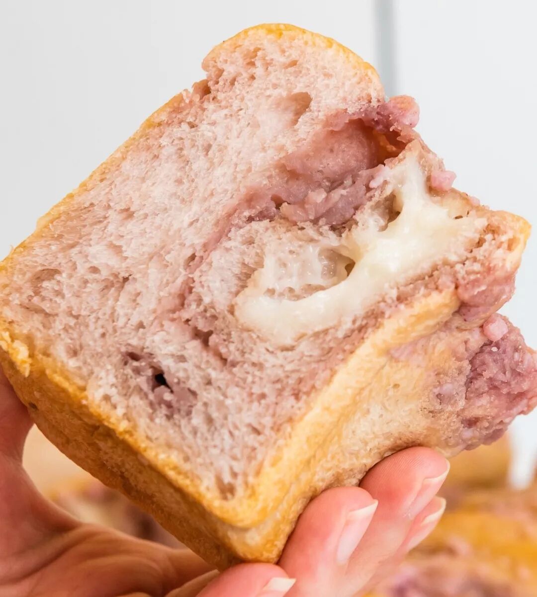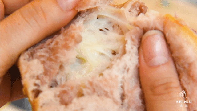 用手掰开之后,就被里面满满当当的馅料惊呆了,每撕一次就跟探宝一样,要不拉丝都难!