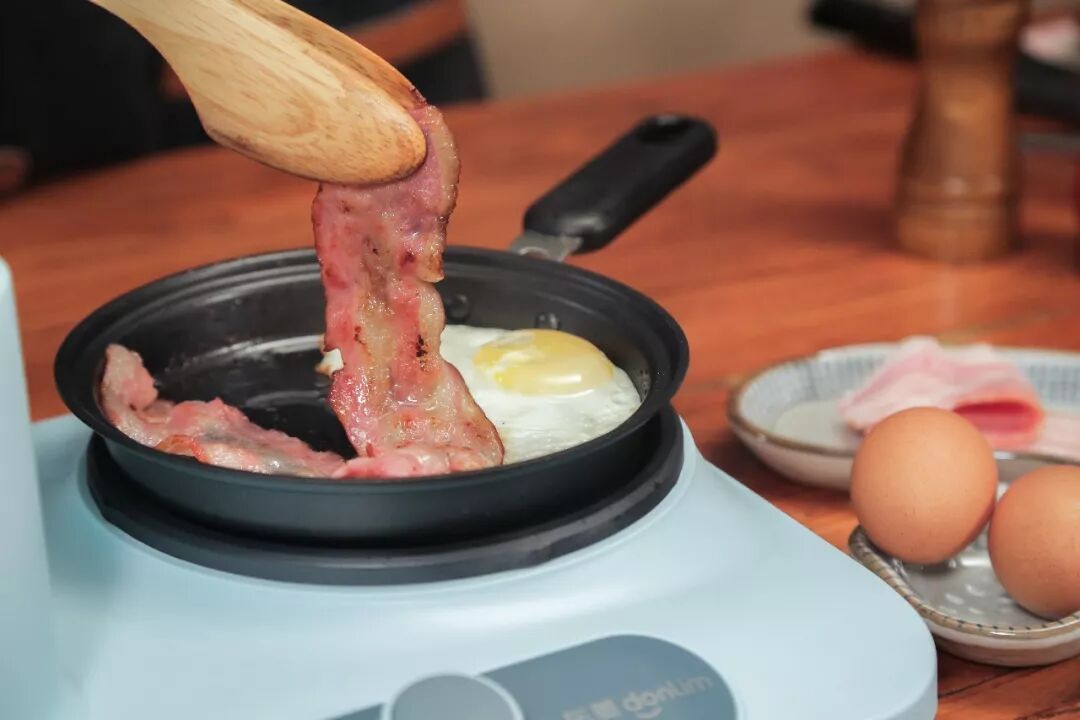 就比如做培根煎鸡蛋。培根要煎到出油、稍微带点焦香,但又不至于太干口感才最好。搭配的煎蛋呢,既要流黄恰好,又要保证营养卫生,调味恰到好处。