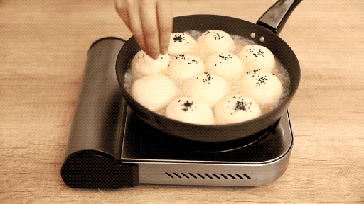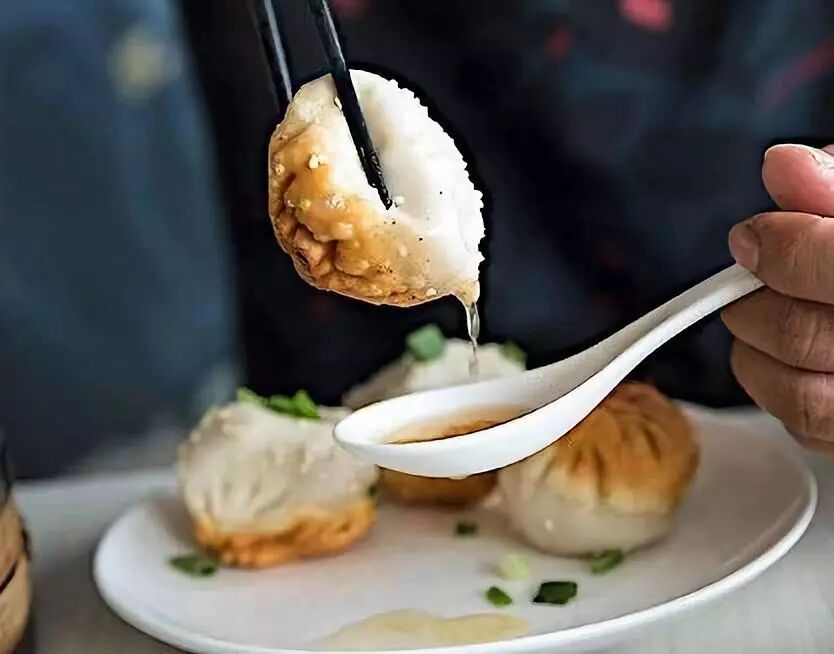 - 一口咬下会爆浆的生煎包,浓浓肉汁口水直流!