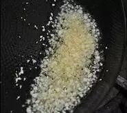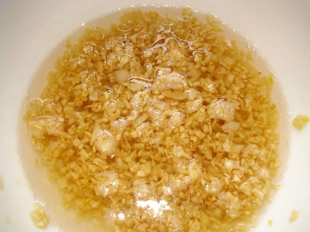 3. 大蒜剁成蒜茸,锅底油,放入蒜茸小火炒出蒜香味,发黄时就好了。