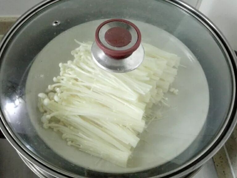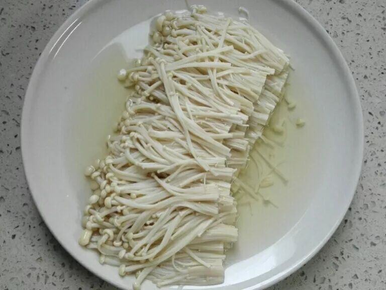 1. 金针菇去除根部(1.5厘米即可),洗净,撕成一小簇。