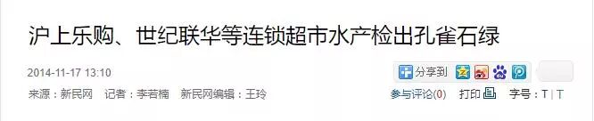 《上海多家超市水产检出孔雀石绿 世纪联华等上榜》
