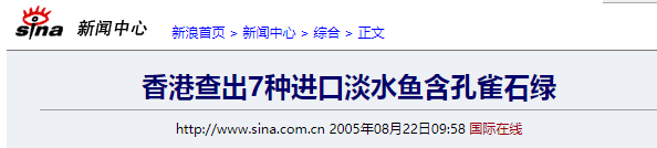2002年,中国也把孔雀石绿列入了养殖禁用的名单。