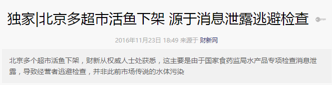 有媒体报道,在2016年,仅仅是传说国家食药监管部门将对水产品进行检查,就导致北京大量超市下架了活鱼。