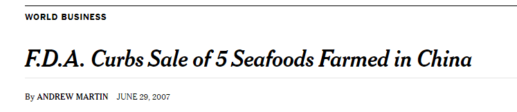 2005年在中国香港,2006年在美国,都有来自中国大陆和中国台湾地区等地的水产品
