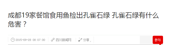 《成都19家餐馆食用鱼检出孔雀石绿》