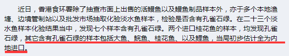 在国内,孔雀石绿也一直是水产品监管中的执法重点。