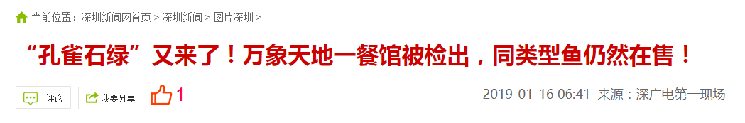 《“孔雀石绿”又来了!深圳万象天地一餐馆被检出,同类型鱼仍然在售!》