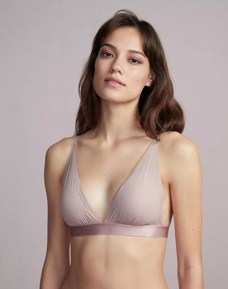 简约的法式三角杯,局部加厚,很贴合胸部曲线,深V的设计,很拉长颈部的曲线。