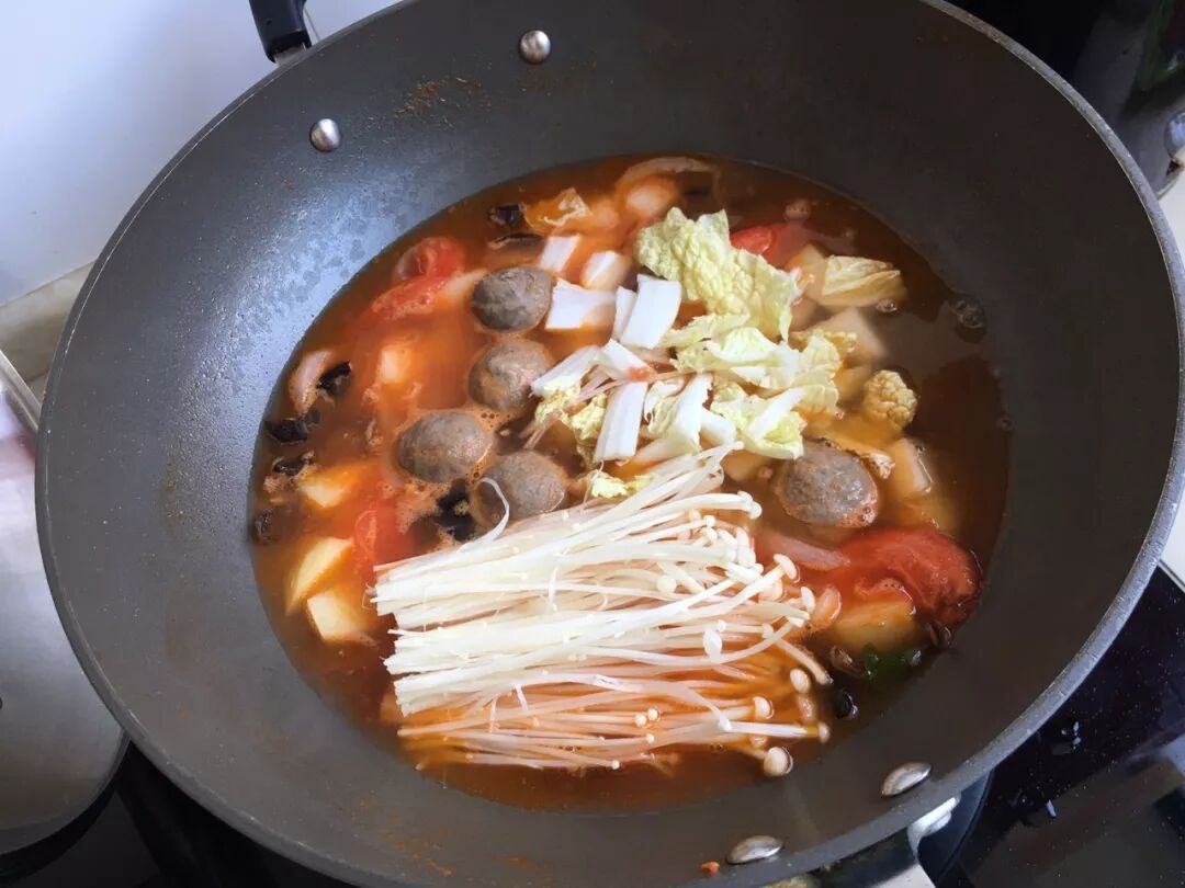 娃娃菜金针菇比较容易熟所以尽量在稍后放。