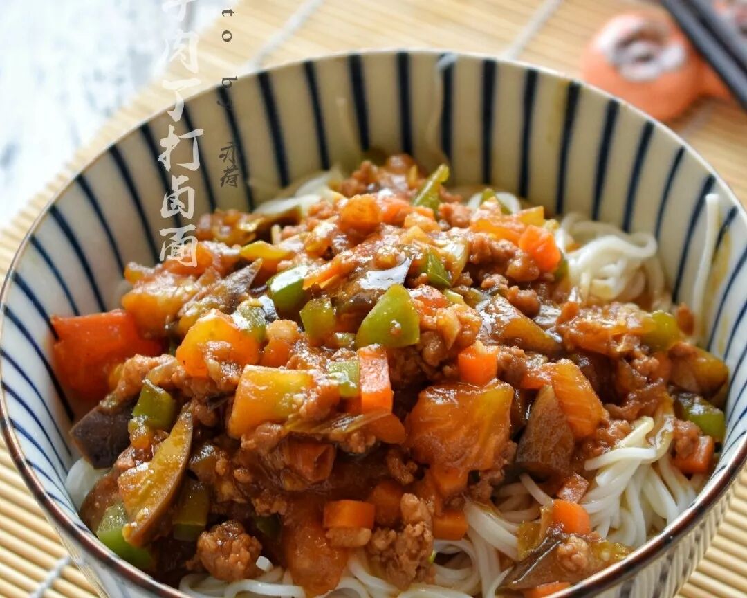 今天的西红柿茄子肉丁打卤面就是这样的。茄子肉末的滋味已不用多说,西红柿加入后酸甜开胃,解了原本的腻,使得整个卤更加清爽。就像大家说的,是会有惊喜的味道!