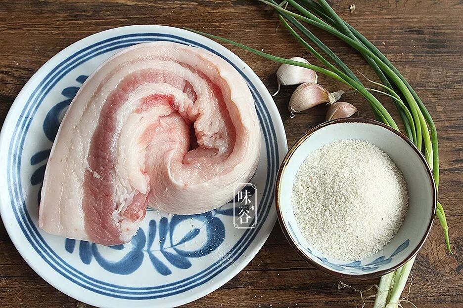 1. 五花肉 500克、蒸肉米粉 1包、蒜 3瓣、豆瓣酱 2汤匙、葱 少许、糖 半茶匙。
