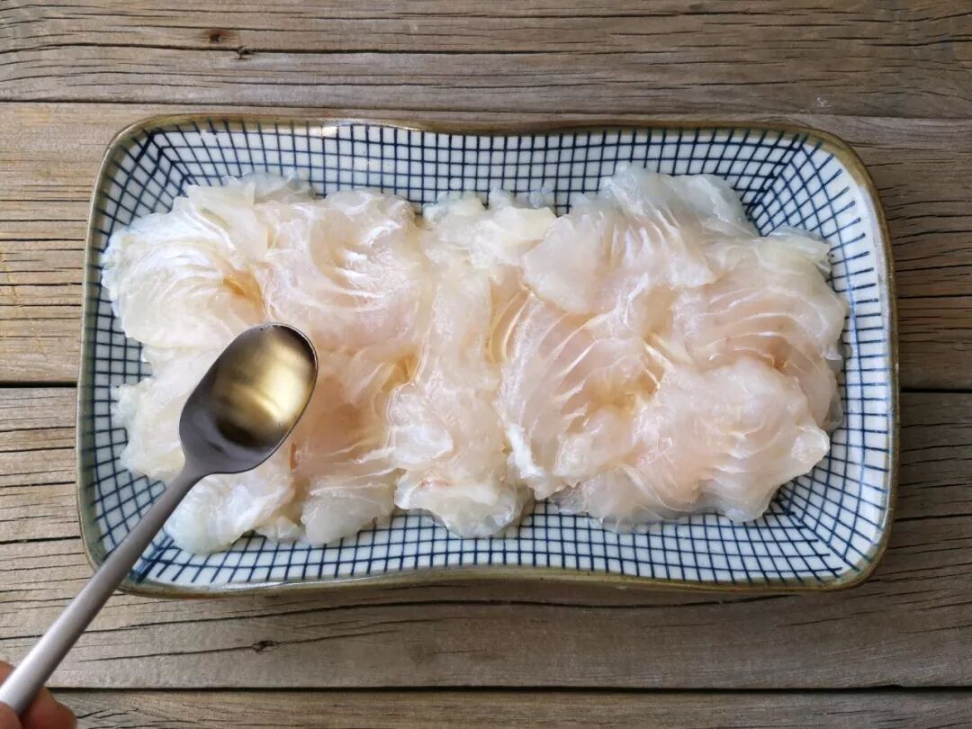 2.在片好的鱼片中加适量料酒抓拌均匀腌制10分钟。