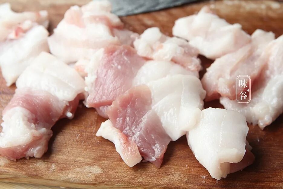 2.首先把我们准备好的五花肉,切成厚薄均匀的肉片,大概5~8毫米厚吧,薄了口感不好,太厚的话蒸的时间要很久。