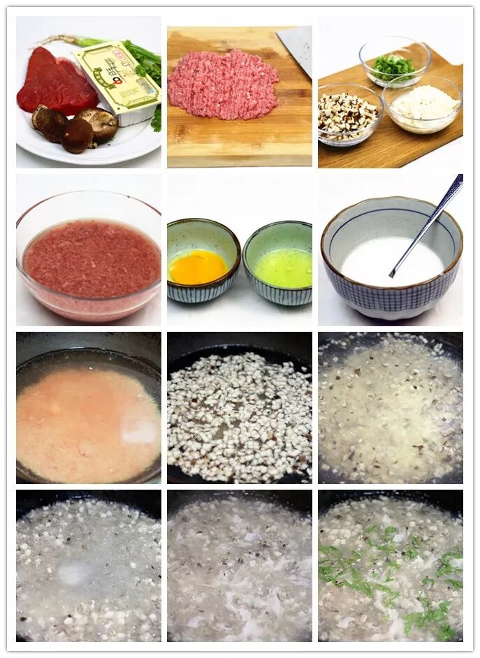 第八步:再烧一些水,把牛肉末、香菇末放入锅中煮开。