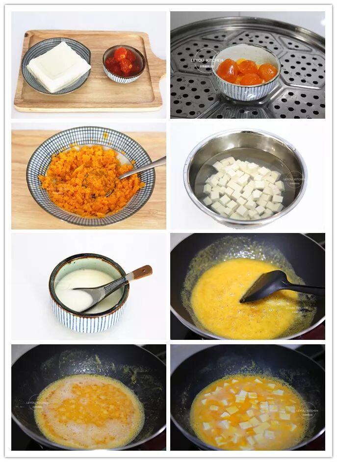 蟹黄豆腐羹,原本应该是菜如其名,主料是蟹黄和豆腐的。后来因为蟹黄成本较高,取制比较麻烦,所以大多都改为用咸蛋黄来代替。这样做好后,豆腐白嫩爽滑,汤汁咸中带鲜,颜色金黄诱人,每一口都是舌尖上的享受。在家制作很简单,喜欢的亲们一定要试试看。