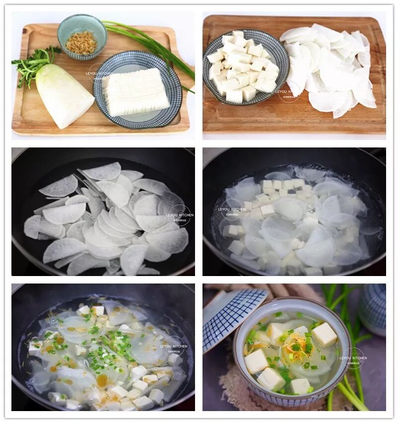 这是一道特别清爽开胃的汤。嫩滑的豆腐与白萝卜薄片,再加一些虾皮提鲜,整道汤水虽说清淡,但回味鲜香,特别美味。而且成本实惠,煮一大锅也就是几块钱,喜欢的亲们一定要试试看。