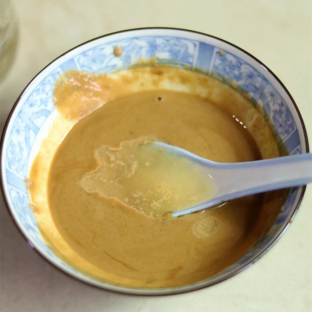 买的芝麻酱成品很浓厚,如果直接吃味道会有一点发苦,像火锅店里的蘸酱,和外面吃到的拌面、拌菜用的拌酱都是已经调过的,经过调澥,芝麻酱才会香气四溢,百吃不腻。