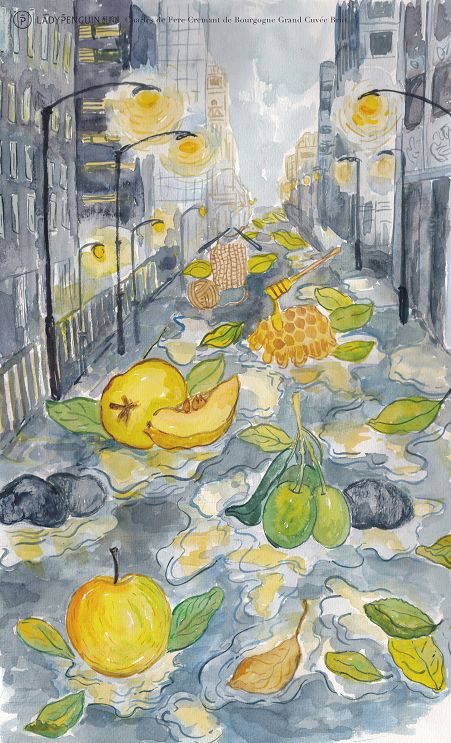 活泼的气泡,在舌面上跳起了小步舞曲,雅致而流畅地荡漾开来。舌尖处传来一抹宜人的甘美,是拿捏恰到好处的糖分,伴随着酒液里散发着的甜香。这香气充满了烘培的温暖,可又透着些许将熟未熟的青涩,好似青苹果做成了馅饼,青橄榄抹上了蜂蜜。继而,线性的酸度,沿着舌面两侧贯穿直下,坚实、铿锵、掷地有声。