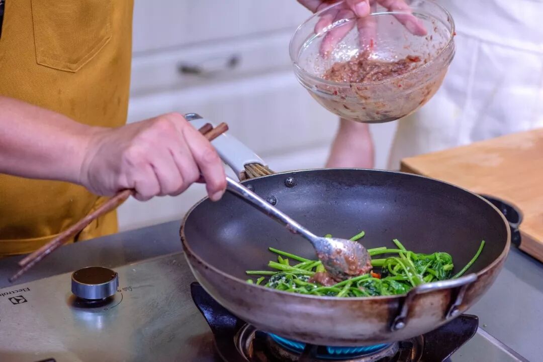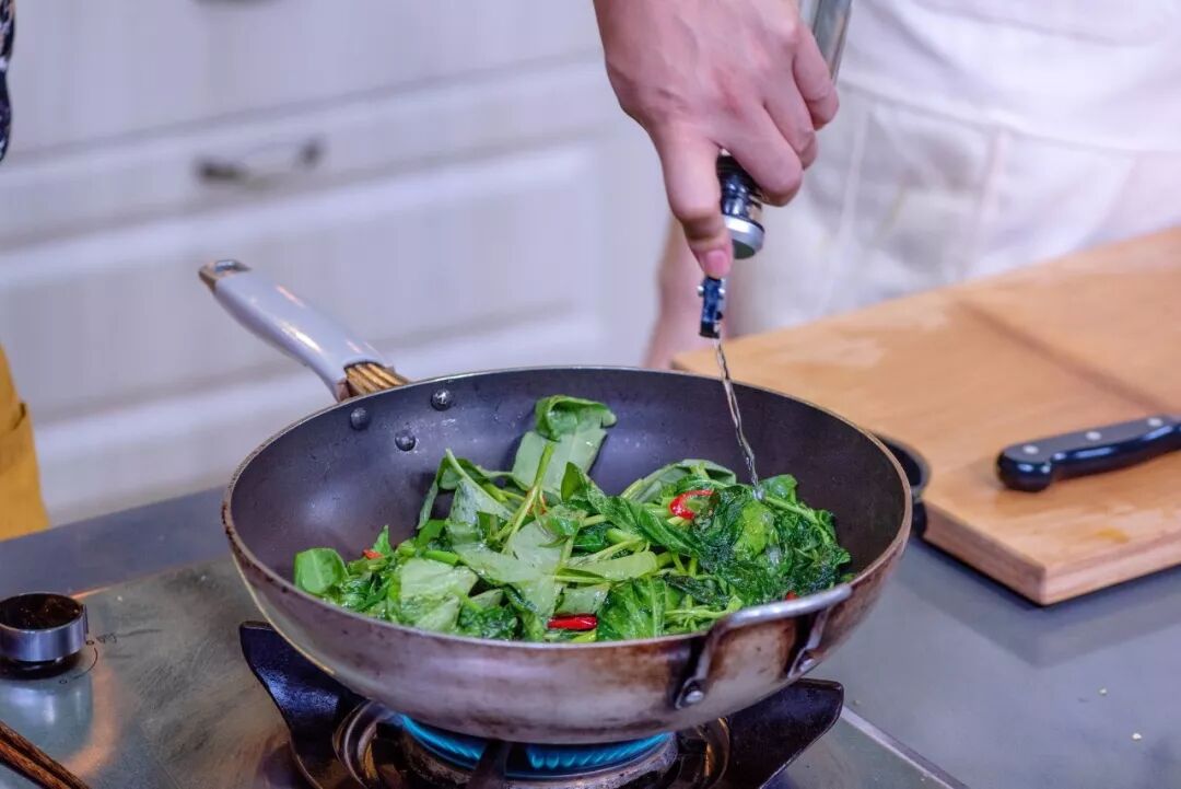 锅中加入多一些的色拉油炒出来的蔬菜会更脆