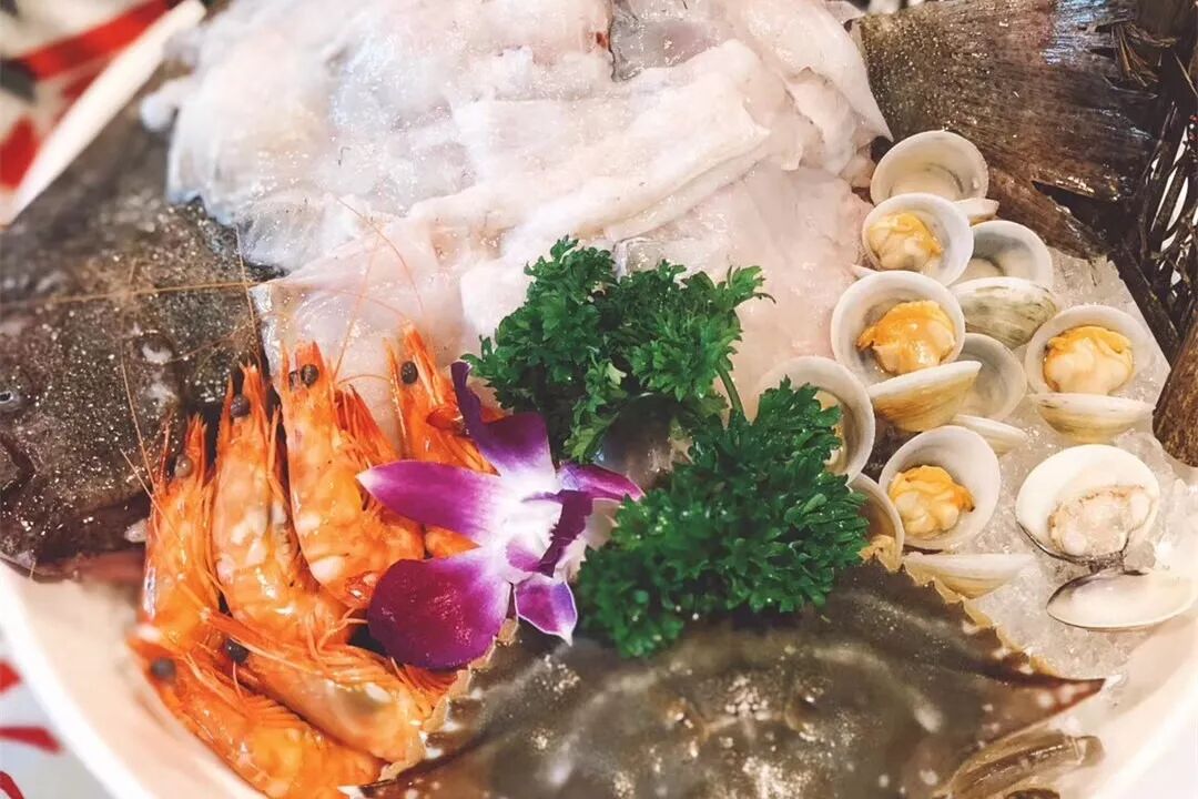 来上一份海鲜拼盘或者贝类拼盘那必是不可少的。处理干净的海鲜躺在冰上,趁着鲜嫩劲儿,赶紧放入锅里一起大快朵颐一番吧。