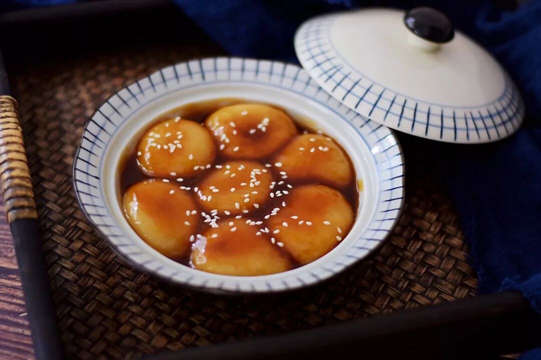 5. 煮至汤圆变软,熟透,红糖汤汁变成浓稠并均匀的粘在汤圆上即可关火,装入盘中撒上熟白芝麻即可享受美食了。