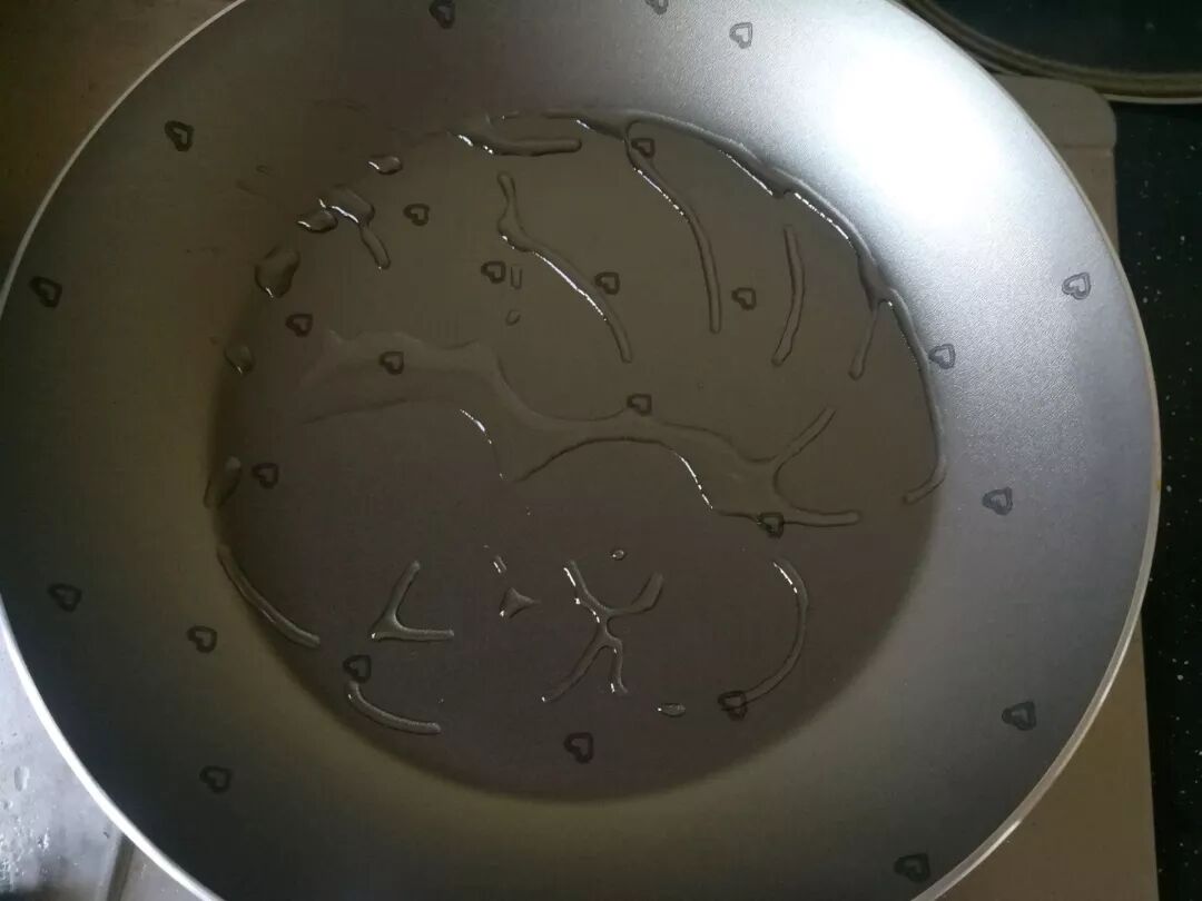 7. 倒入蛋液,趁蛋液表面凝固,撒入葱花和黑芝麻。