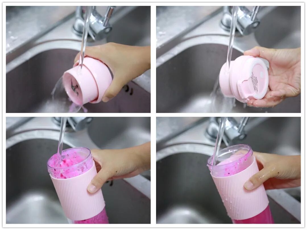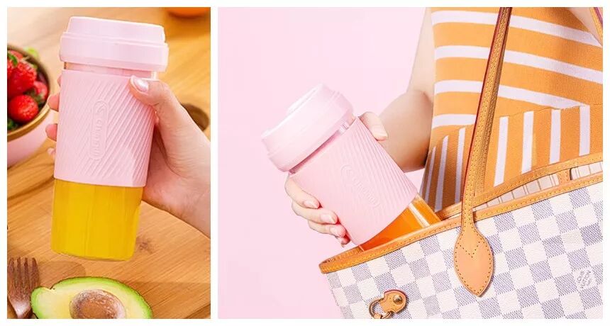 平时还可以把它装到包包里,既当榨汁机用,也可以当水杯来用。早上出门的时候,往杯子里装一些水果,等到了单位或者学校,就可以随时随地喝到果汁。这比在外面买一杯鲜榨果汁要便宜太多了~