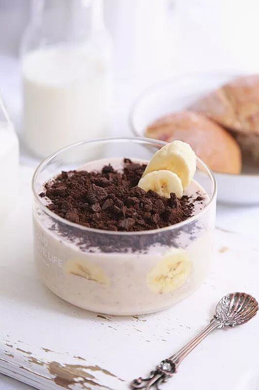 香蕉中含有多种微量元素和维生素,还有植物纤维。对于促进肠胃消化、排便有很好的作用。把香蕉与酸奶一起做成奶昔,口感丝滑,营养加倍。再放一些奥利奥饼干碎,既好看又好吃。