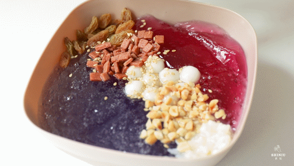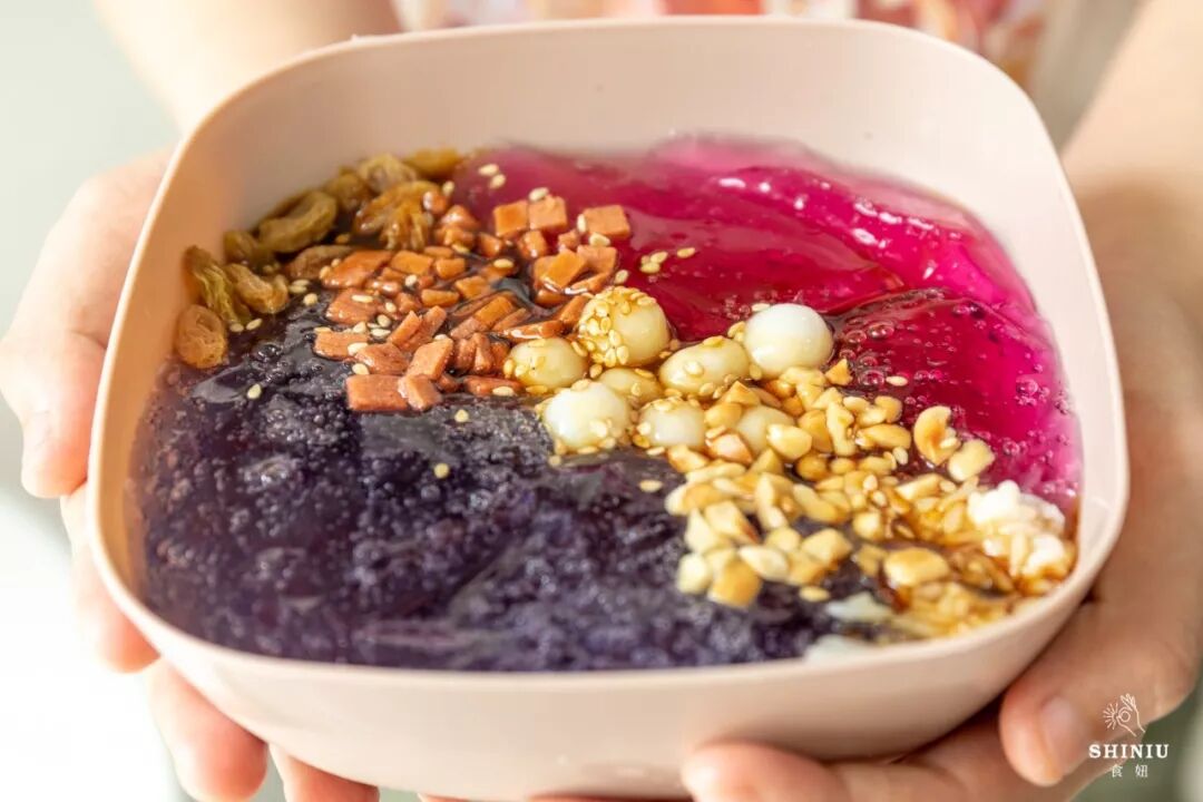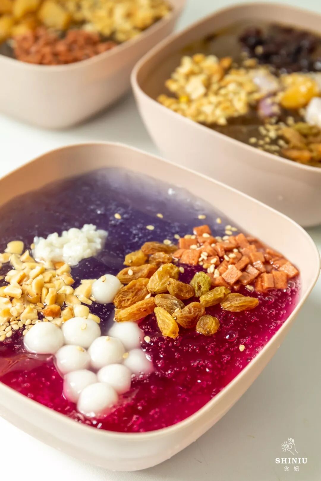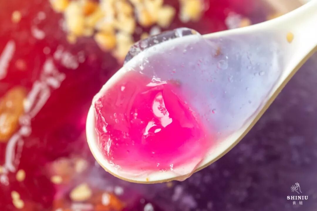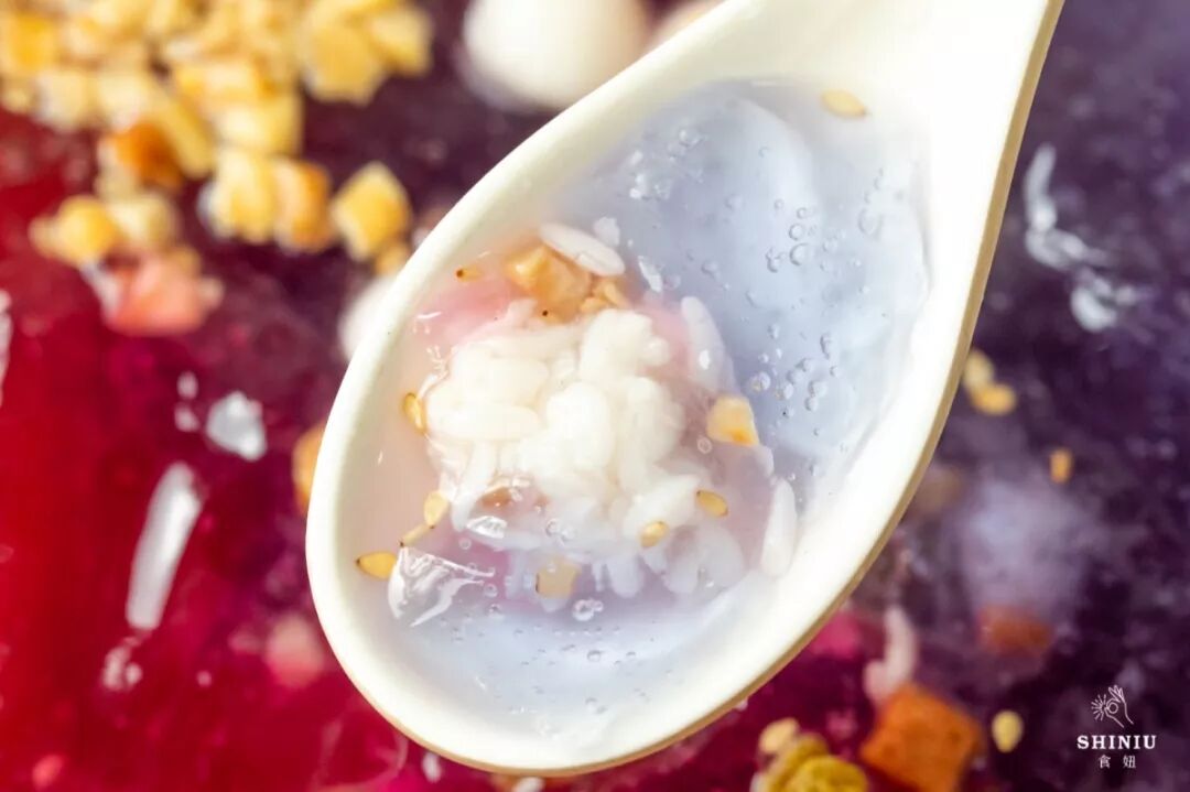 这是我在深圳吃过的颜值最最最高的冰粉了,碗里仿佛藏着一道银河。它还有个超级梦幻的名字,叫“神仙伴侣”。这么美的冰粉,仙女都不会错过的吧